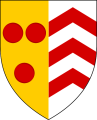 Escutcheon of Courtenay impaling argent three chevrons gules.png 405 × 500; 27 KB