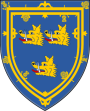 | style="vertical-align:top;" | Argent, five fusils gules, each charged with a fleur-de-lys or, conjoined in fess between three mullets sable, two and one.
