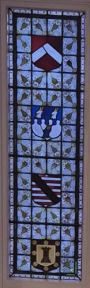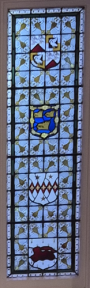 Each of the side windows contains four shields. These are the arms of the directors of the Devon and Exeter Hotel Company at the time the hotel was built: