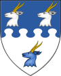 | style="vertical-align:top;" | Per fess nebuly, three antelopes' heads erased counterchanged, armed or.