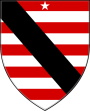 <p><span style="font-size:smaller;">'''''Blazon''''': Barry of twelve gules and argent, a bend sable, a mullet for difference.</p>