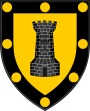 | style="vertical-align:top;" | Or, a castle sable, a bordure of the second bezantée.