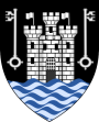 The ?th window on the south side of the cathedral nave was glazed in its present form in about 1950, and contains the coats of arms of the ten places (other than Exeter) which were designated as boroughs at that time. Unusually for arms in the cathedral, these include full achievements, i.e. with crests, supporters and mottoes, rather than only shields.