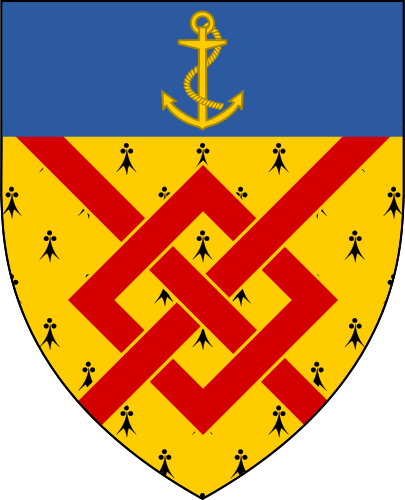 Arms BGA1884. Exeter monument has wife's arms impaled (Le Cras?) but I can't make it out or find a source.